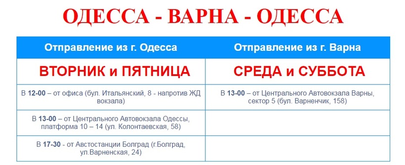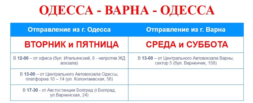 Из Варны в Одессу регулярные рейсы осуществляют несколько компаний: