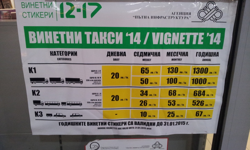 Расходы на топливо составят около 8-ми левов. Если вы приехали в Болгарию на своем автомобиле, будьте готовы к тому, что дороги в этой стране для иностранных транспортных средств являются платными. Необходимо купить виньетку, по-болгарски – «винетка». Они продаются на разные сроки действия. На 7 дней будет стоить 8 евро, на 1 месяц – 15 евро, а на год 50 евро. Лучше не рисковать и все-таки купить её, потому что штраф за такое нарушение составит 300 левов.