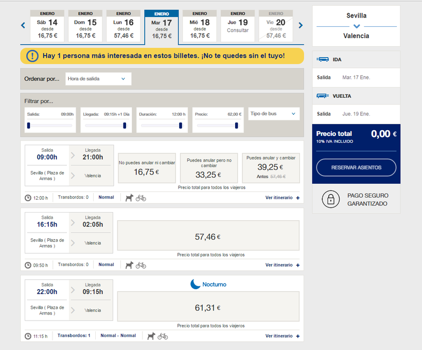 Ниже приведена информация о том, сколько часов вам потребуется, чтобы добраться от Севильи до Валенсии, а также приведена примерная стоимость проезда (средняя цена билета) на том или ином виде транспорта.