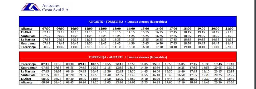 Итак, первая часть маршрута – поездка из Торревьехи в Аликанте. Рейсы в данном направлении обеспечивает транспортная компания Autocares Costa Azul. Ее автобусы выглядят вот так: