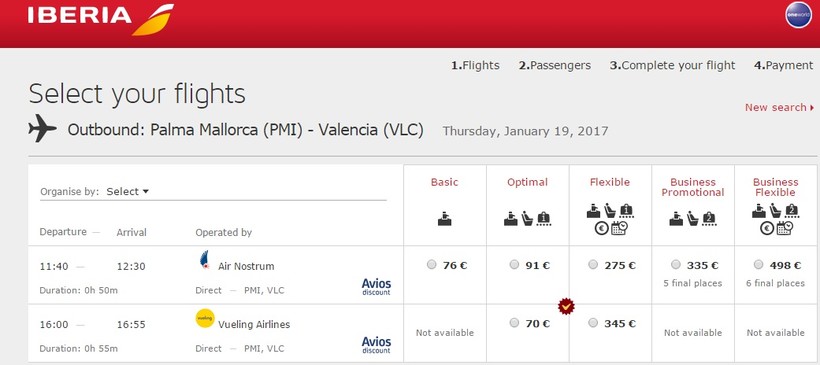 Теперь посмотрим что же предлагает авиакомпания Iberia: