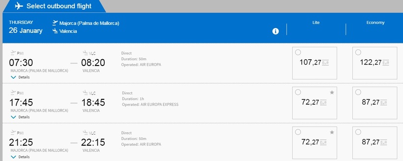 По маршруту Пальма-де-Майорка - Валенсия выполняются рейсы несколькими компаниями, что позволяет найти хороший вариант по приятной цене.