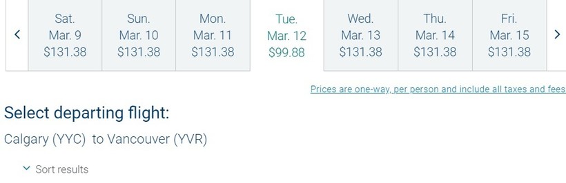 Мне очень нравится летать самолетами компании Westjet. Между городами выполняется больше десяти прямых ежедневных рейса. Первый в 07:30 (этим я и полетел в Ванкувер), а последний в 23:30. Интервал между рейсами составляет всего лишь 1 час (между двумя последними — полтора часа). Лететь примерно 1 час 30 минут.