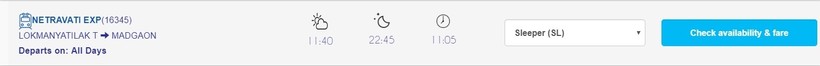 В дороге проведете 11 часов. Есть и другие рейсы, в городе Мумбаи не один железнодорожный вокзал. Расписание вы можете самостоятельно уточнить на официальном сайте железнодорожного оператора. Рейсов в Гоа немало, 10 в день точно наберется. Железнодорожная станция в штате Гоа называется Madgaon, располагается она в городке под названием Маргао.