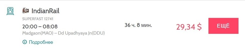 Ниже приведена информация о том, сколько часов вам потребуется, чтобы добраться от Гоа до Варанаси, а также приведена примерная стоимость проезда (средняя цена билета) на том или ином виде транспорта.