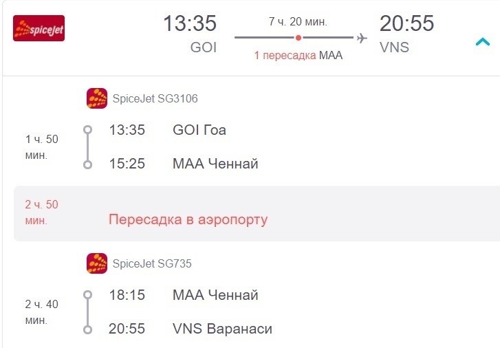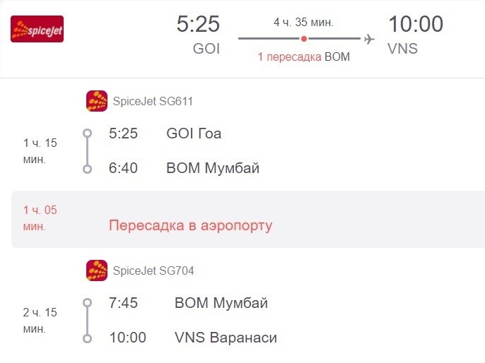Вот таким рейсом я добиралась в Варанаси (смотрите на скриншоте).