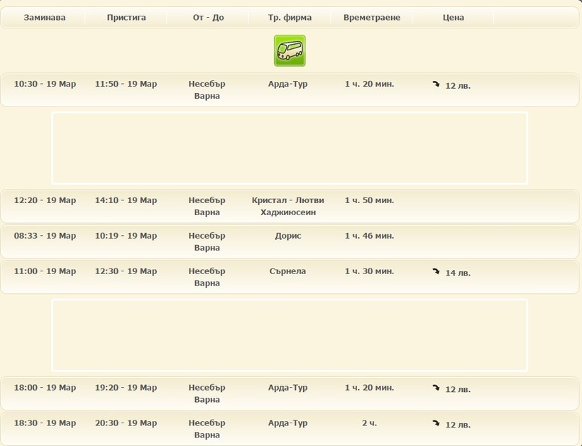Ну и вот Вам расписание рейсов из Несебра в Варну других перевозчиков.