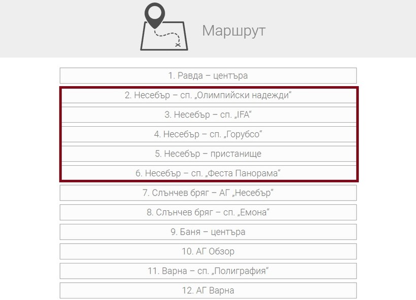 А это перечень остановок в Несебре, где можно сесть на эти рейсы.