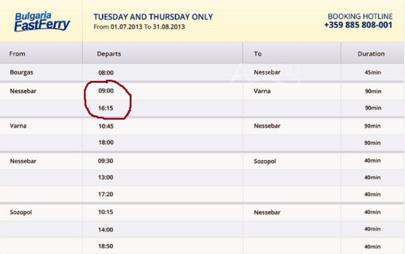 Там можно узнать точную информацию о наличии и расписании морских рейсов в Варну. Путешествовать на катере гораздо лучше, чем в автобусе :).