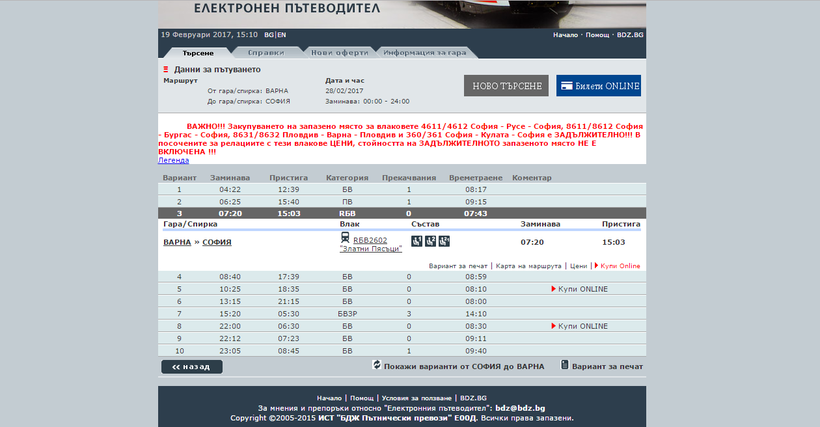 Я никогда не ездила по Болгарии на поезде, и мне было просто интересно: какие они – болгарские поезда? В первую очередь именно по этой причине я зашла на сайт Болгарских железных дорог и начала изучать представленную там информацию.