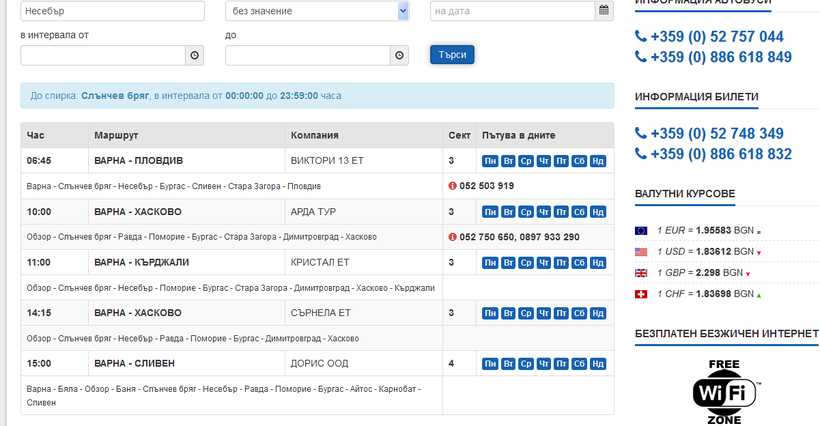 Обратите внимание, что в Варне есть автовокзал и автостанция, и я привожу расписание автобусов, отправляющихся именно с автовокзала. Центральный вокзал достаточно большой, рядом есть торговый центр с недорогими кафешками, где можно перекусить.