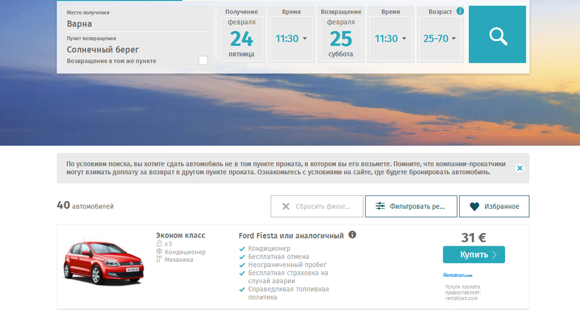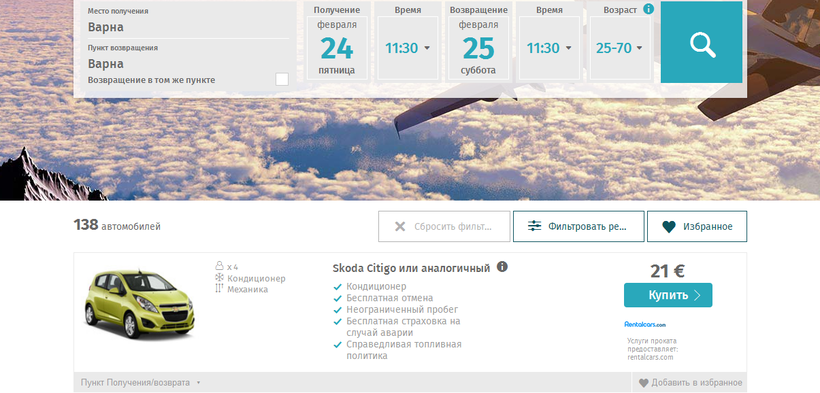 Поискать выгодные предложения можно, например, здесь. Вообще же, если вы планируете во время отпуска путешествовать на арендованной машине, то советую найти ее заранее, так как летом бюджетные варианты разбирают очень быстро. Бензин в Болгарии стоит совсем недорого – 1,08 евро за литр.