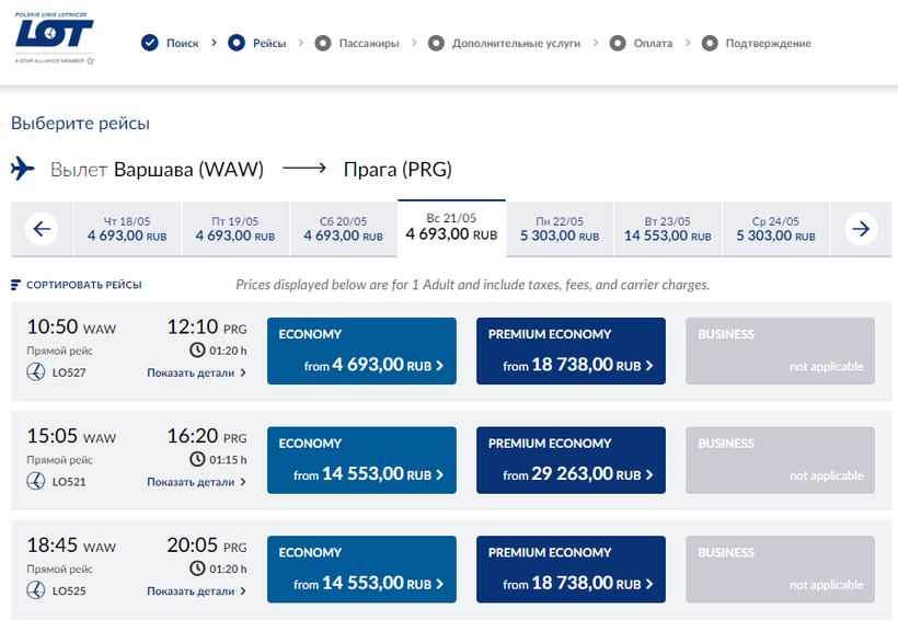 - У LOT билет дороже, но в стоимость входит закуски и напитки. В день вылетает четыре рейса.