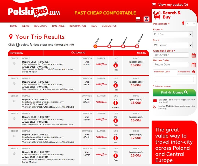 Билеты на автобус продаются на автовокзале и на сайте PolskiBus.