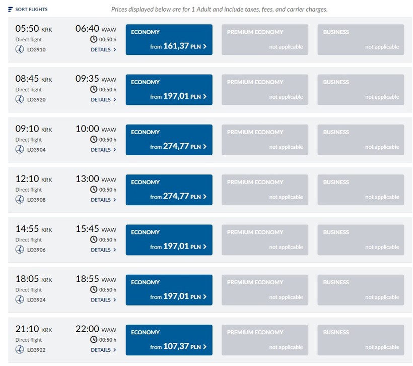 Этот рейс обслуживает авиакомпания Lot, ежедневно выполняет около десятка рейсов: