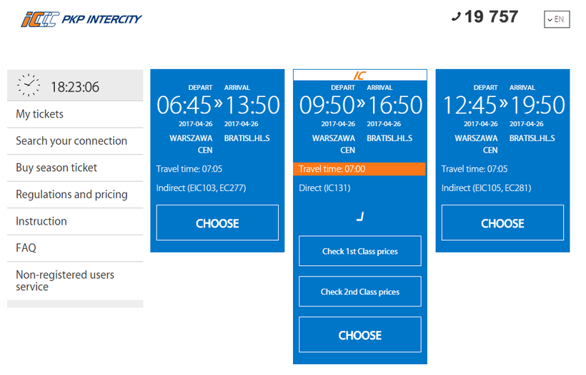 Билеты можно покупать на сайте польских железных дорог или на словацком ЖД сайте. Если с навигацией возникнут проблемы, то остаётся только прийти на ЖД вокзал Варшавы и приобрести билеты там.