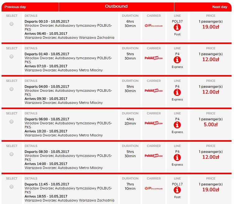 Для путешествия из Вроцлава в Варшаву можно воспользоваться услугами компании PolskiBus.