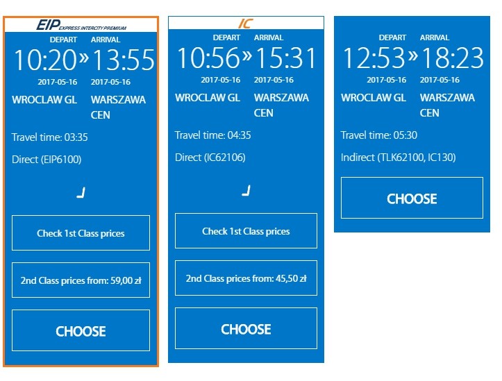 Доступных прямых рейсов не так много, посмотреть расписание можно на сайте перевозчика. Веб ресурс укажу ниже.Добраться на поезде в польскую столицу из Вроцлава можно за три с половиной часа и более.