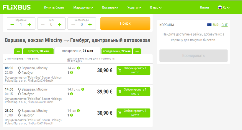Билеты на автобус стоят от 30 до 45 евро (130-190 злотых).