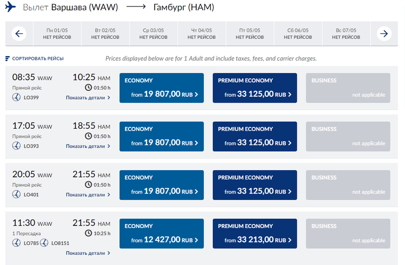 Билеты можно приобрести или через официальный сайт LOT или через сайты подбора авиабилетов вроде вот такого.