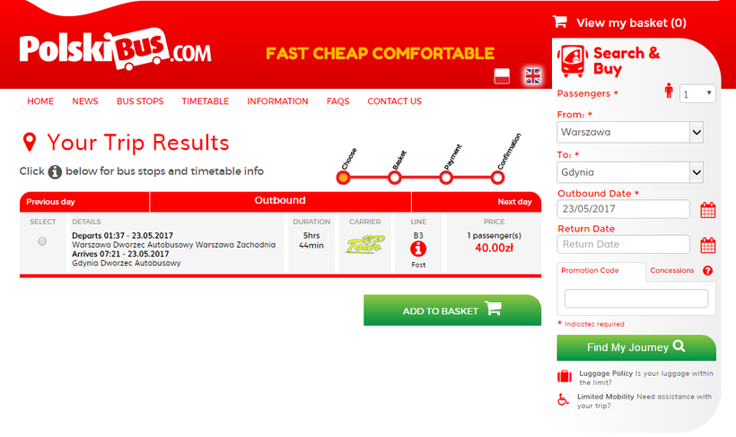 Я покупал билеты на официальном сайте PolskiBus. Там можно найти всю информацию – расписания, адреса остановок, марку автобуса. Если не знаете английски – гугл транслейтер в помощь. Можно также купить билеты на автовокзале.