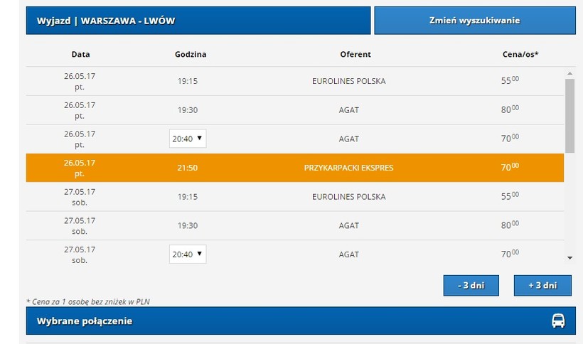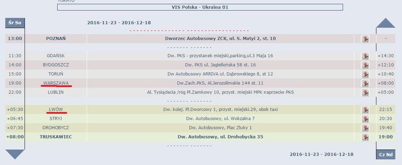 Есть еще автобусы компании Agat и Eurolines, неважно на каком сайте смотреть, расписания объединены: