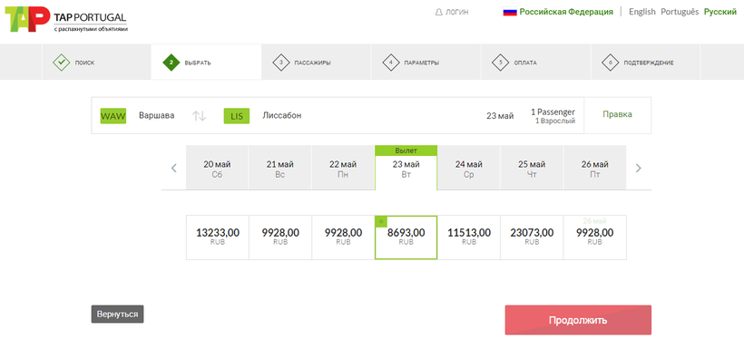 Расписание с сайта TAP Portugal Вылеты из аэропорта Варшава-Модлин