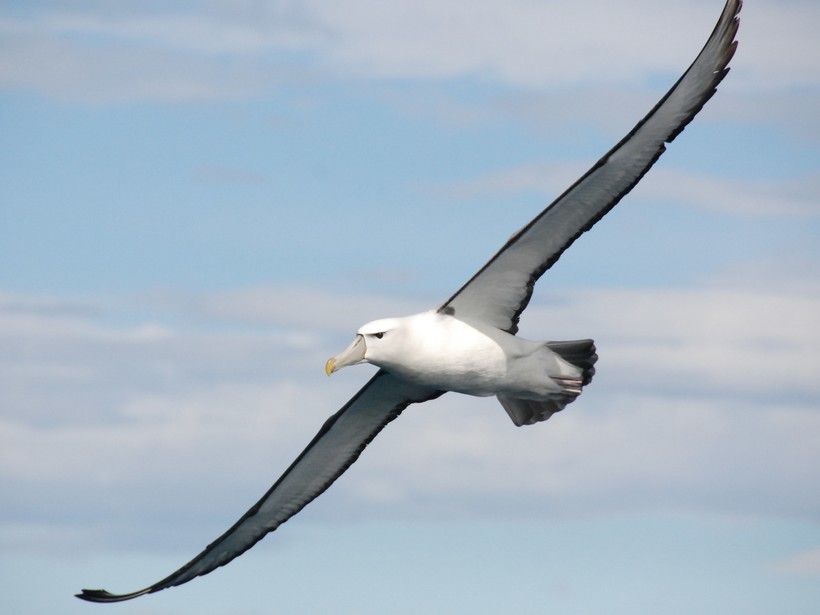 Крупнейшим среди летающим птиц является альбатрос. Его тело не такое уж и большое, а вот размах крыльев может достигать до 4 метров. Весит альбатрос около 11 килограмм. Проживает он в водах Антарктиды. Гнездятся альбатросы на удаленных островах и поэтому смертность среди них очень низкая. Единственный их враг — человек. Живут эти птицы до 58 лет. Самец и самка образуют пару на всю жизнь и высиживают только одно яйцо в два года.