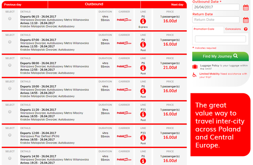 Билеты продаются на автовокзале и на сайте PolskiBus.