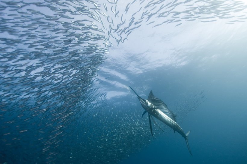 Небольшие рыбы (весом до 400 грамм), которые живут стаями, способны развивать большую скорость. Представьте себе гигантский светящийся комок из ставрид, который несется со скоростью 80 километров в час! Хищникам, охотящимся на этих сверхскоростных особей, нужно быть не только ловкими, но и сообразительными.