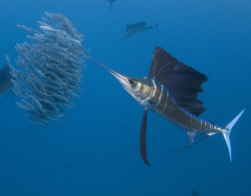 Обогнать парусника в состоянии только его «брат» — рыба-меч, которая недавно набрала на 3 км меньше. Рыбы очень похожи, отличить можно только по отсутствию выдающегося плавника на спине.