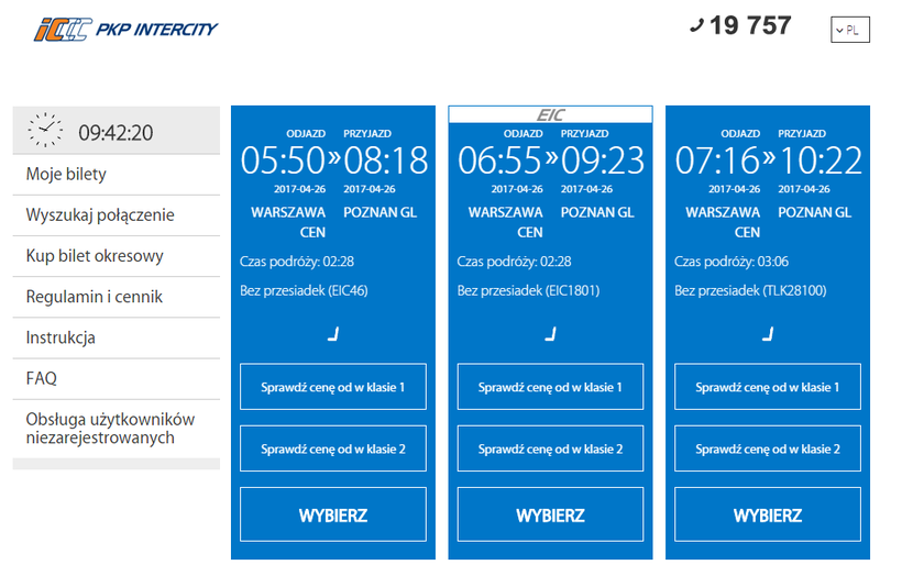Билеты стоят от 48 злотых (11 евро), за билет второго класса на поезде TLK и до 200 злотых за билет первого класса на скоростном поезде EIC.