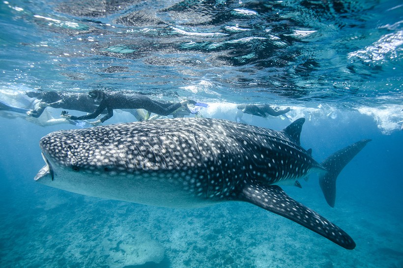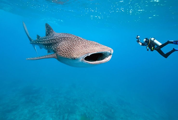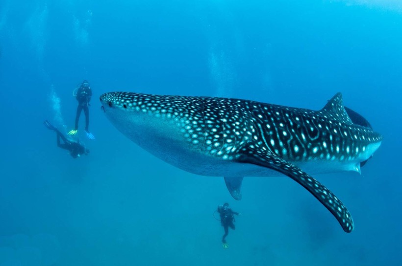 Некоторые смелые дайверы также пробуют подплывать к самой большой рыбе в мире, чтобы потрогать её и сфотографировать.