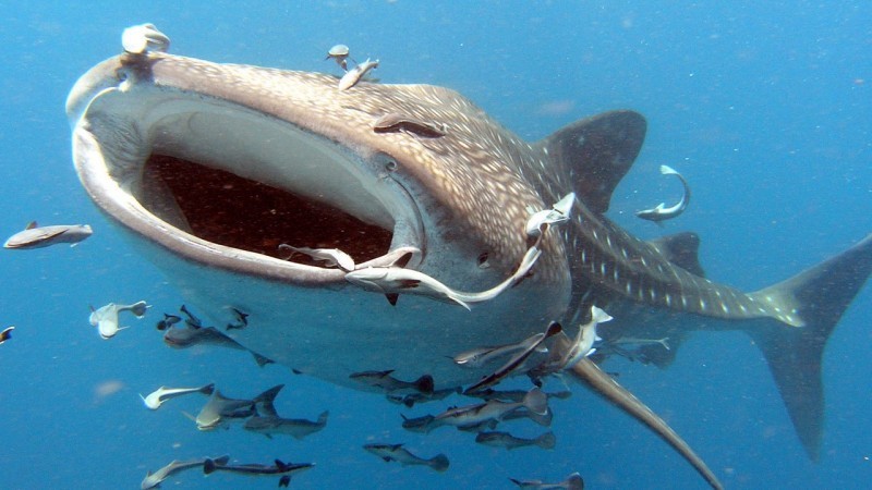 Что интересно, ее пасть находится на самом краю головы, которая почти всегда открыта для ловли добычи. Не переживайте, этот вид акулы не ест мяса крупных рыб или, тем более, человечины, а питается только планктоном. На самом деле китовая акула не представляет никакой опасности для человека, а даже позволяет дайверам дотронуться до нее руками. Двигается она довольно медленно — всего 5 км/ч, поэтому суда и корабли могут часто наталкиваться на нее. Акулы-гиганты не любят одиночества, поэтому держатся они преимущественно небольшими стаями, а прожить им пока удается всего лишь 50–60 лет.