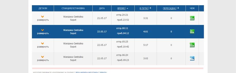 Чтобы увидеть остальное расписание и подобрать себе самый подходящий рейс рекомендую зайти на сайт польских железных дорог.