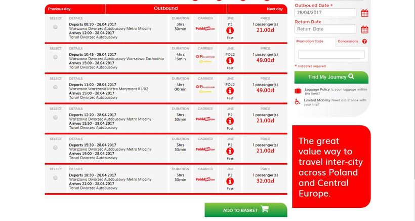 - Цена билета на автобус Polski Bus составляет от 21 до 49 злотых (5-11,5 евро) в зависимости от рейса.