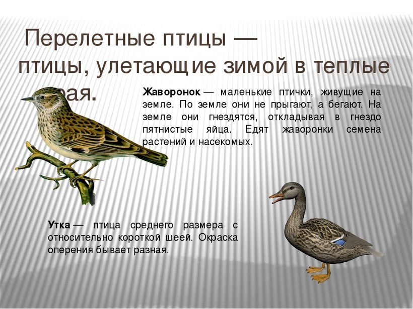 На картинке вы видите утку и жаворонка. Эти птицы наиболее знакомы нам. Итак, начну с жаворонка, звонкого и юркого пернатого.