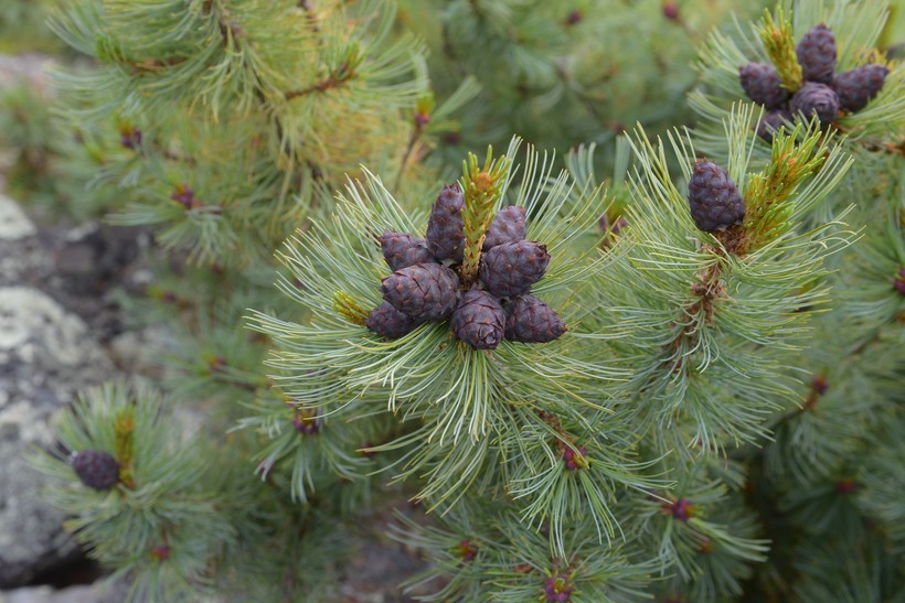 Удивительное дерево, растущее на границе тундры и тайги — таежный стланик. Некоторые отдельные деревья достигают возраста двухсот пятидесяти лет. Растут эти деревья исключительно на камнях и представляют собой деревца небольшого размера. Из этого дерева получают известное лекарственное средство скипидар. Содержание эфирных масел в стланике в два раза больше, чем в сосне. Вещества, полученные из таежного стланика широко используют в медицине. В общем очень интересное вечнозеленое деревце.