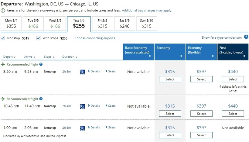 Доступных рейсов всего несколько. Прямых так вообще два или три, есть еще с пересадками в Нью-Йорке.