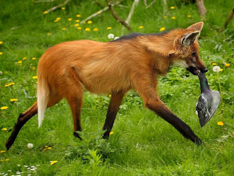 Гривистого волка еще называют гуарой. Этот зверь причислен к семейству псовых. У данного зверя очень длинные ноги, такая непропорциональность, на мой взгляд делает его немного «карикатурным».
