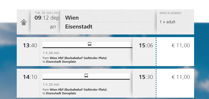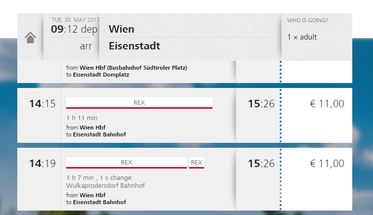 Пример расписания с австрийского ЖД сайта Из Вены в Айзенштадт на автобусе