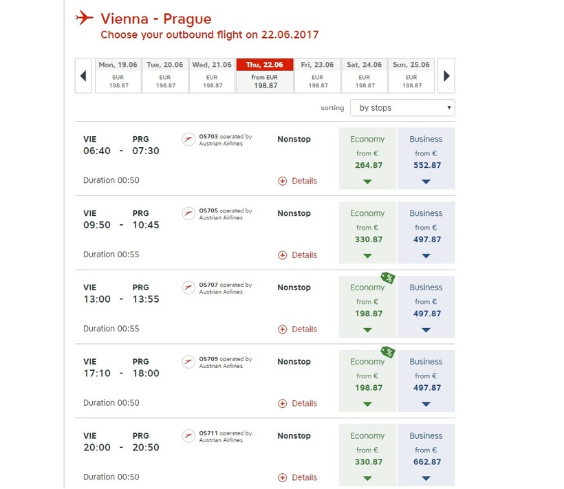 Существенно сократить время поездки можно, купив билет на самолет Вена — Прага. Рейсов несколько и все их обслуживает Austrian Airlines: