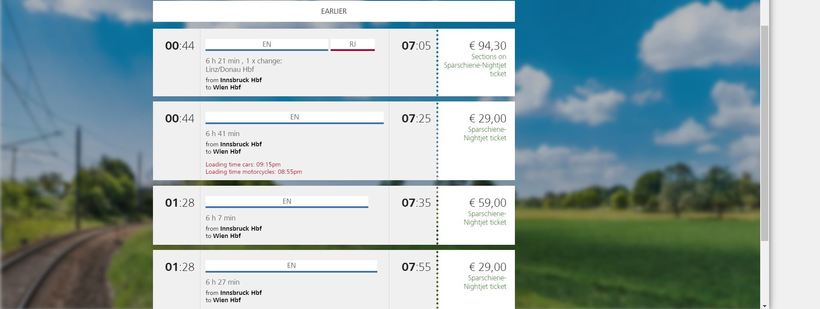 Ниже приведена информация о том, сколько часов вам потребуется, чтобы добраться от Инсбрука до Вены, а также приведена примерная стоимость проезда (средняя цена билета) на том или ином виде транспорта.