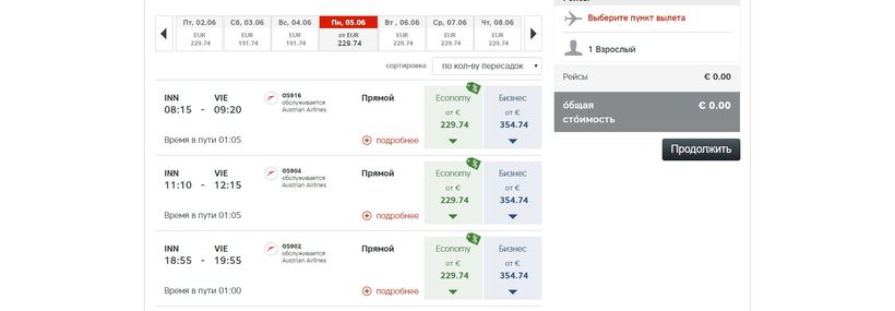 Осталось лишь разобраться с расписанием полетов. Вот скриншот с сайта компании: