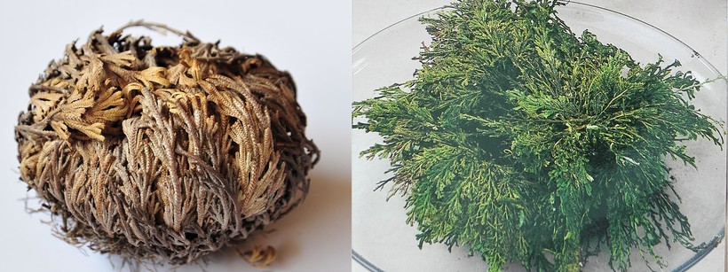 Из Германии же я привезла себе очаровавшее меня растение, там мне его назвали пустынной розой, а потом я нашла его правильное наименование — плаунок чешуелистный. Этот комочек сухих листьев — еще один вид пустынной флоры, который без поступления влаги «спит», впадает в анабиоз. Он спокойно лежит месяцами без признаков жизни, но если поместить его на мокрую поверхность, он раскрывается, и сухие веточки зеленеют за несколько часов.