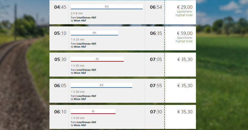 Так как между городами курсирует несколько категорий поездов, то и стоимость билета может отличаться достаточно сильно. Как правило, дешевле всего стоит проезд на поездах категории RJ и ICE. Билет на них можно найти от 9 евро, хотя нужно отметить, что, в основном, проезд в Вену из Линца подороже.
