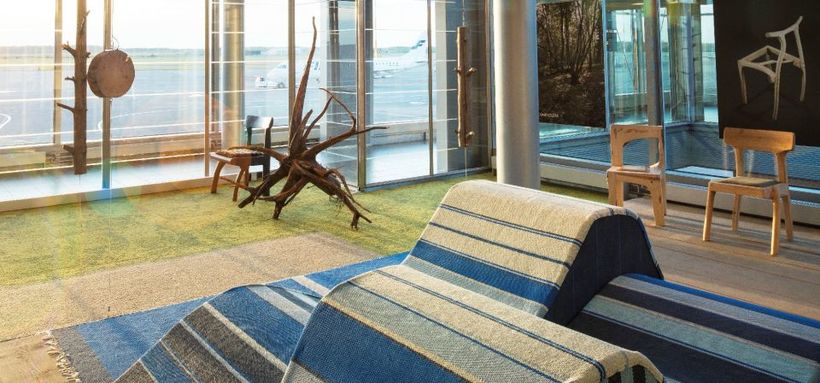 Также блуждая по аэропорту в ожидании своего рейса, я наткнулась на интересную комнату - пространство Кайнуу, где все могут расслабиться под звуки природы - инсталляцию "Звуковые частоты финского леса". Или просто поваляться, посидев в Интернете, который по всей территории предоставляется бесплатно)).