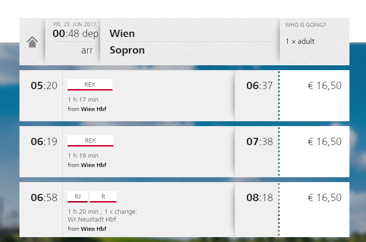 Первый рейс в Шопрон отправляется в 5:20, последний – в 21:50. Ночью добраться в Шопрон можно только окольными путями – это очень долго, четыре с половиной часа дороги. Мы ехали с самого утра прямым поездом REX. Regional Express – вроде нашей электрички. Только здесь чище, отдельные сиденья и в некоторых вагонах есть второй этаж. За полтора часа дороги я даже не успел узнать где находится туалет.