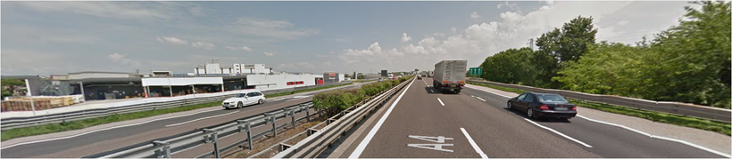 Выезжать из Падуи нужно так, чтобы попасть на платную автодорогу А-4. Выезд выполняется при помощи одной из развязок, смотря из какой части города нужно будет выезжать. После выезда дорога приобретает вот такой вид: