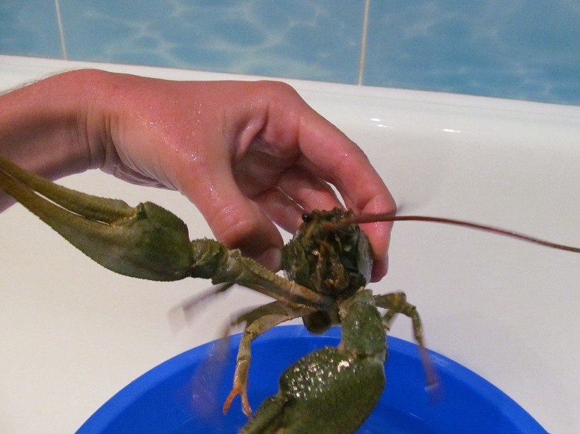Мы ловили их руками, при этом действовать нужно с молниеносной скоростью. Без экипировки в этом деле никак, потому что не очень хочется получить травму от клешней. Плотные перчатки в помощь!